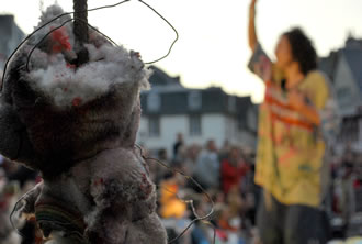 Mercredi, 22h32, alors que, cause d'intempéries, Kadogo doit être annulé, le public, imperturbable face à la pluie, emporté par la musique, se met à danser et réclame le spectacle. Porté par l'énergie du public, la compagnie décide de se donner à fond pour sa prestation du lendemain. Et ce sont des chiliens survoltés et déterminés qui arrivent jeudi, sur une place Allende noire de monde.