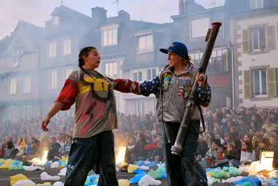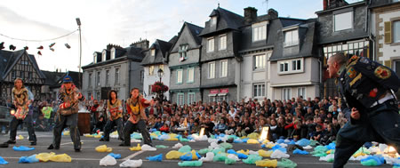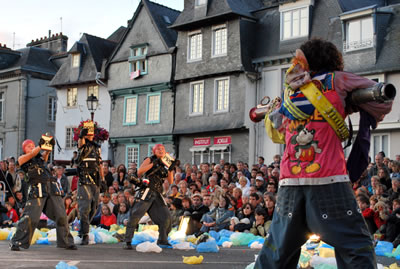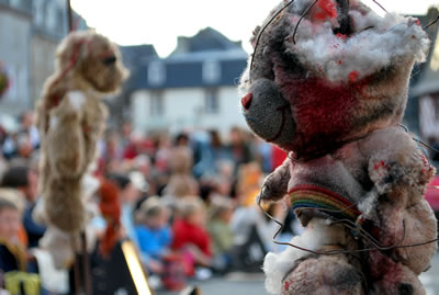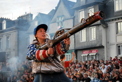 La représentante de la délégation finistèrienne d'Amnesty Internationale, entame une entrée en matière militante, pour marquer le soutien et le respect de l'association à la cause de la compagnie. Elle cède la parole à Nacho, directeur de la compagnie, qui très ému, expose au public le contexte du spectacle, aujourd'hui bien particulier. Pour La Patriotico Interesante, jouer ici sur la place Salvador Allende est très emblématique. Salvadore Allende, celui qui a voulu donner la parole au peuple, avant d'être renversé par la dictature d'Augusto Pinochet, demeure un symbole de la défense de la démocratie. Pour ces chiliens qui revendiquent le droit à l'expression, et pour tous, on le ressent cette représentation est hautement symbolique.