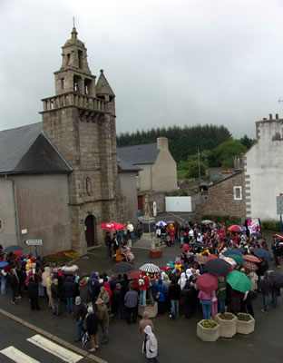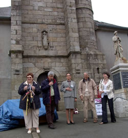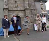 Sur le parvis de l’église, Michelle Beuzit, maire de Lannéanou, attend ses invités... qui tardent, et pour cause !