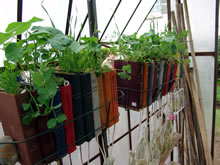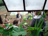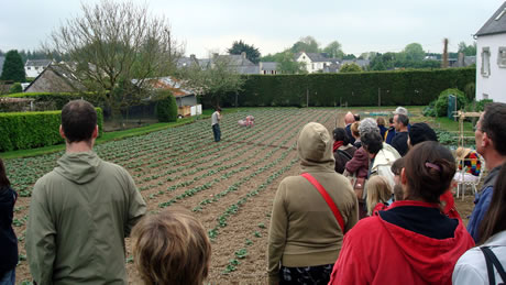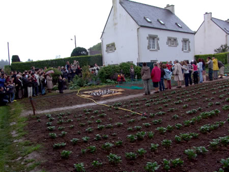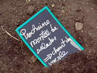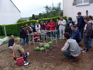 Devant un carré potager, surmonté d’un échafaudage gracile équipé de cordelettes et poulies, le jardinier nous invite à participer à la levée des salades, il avertit :