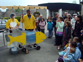 Melle Pilchard démarre aussitôt la traduction simultanée du discours de Yannick Besnier, Président de l’Association Des Mordus, et Yvon Hervé lance un « Place à la fête ! » qui ouvre les spectacles.