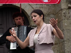 Un parasol publicitaire d’une boisson américaine bien connue (mais peu appréciée) est réquisitionné pour abriter l’accordéon, et la représentation commence : les voix s’élèvent, la diva chante sa solitude en recherche de l’Amour et de l’amoureux qui en sera l’émanation, la gouaille, réaliste attend l’amour qui se présentera, tout simplement.