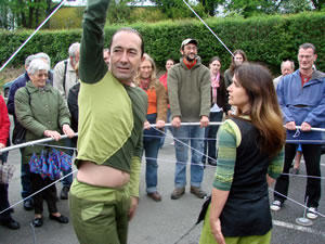 Le jardinier de la Cie Les Chercheurs d'Air est affairé : à sauts de bêche il parcourt cet univers cultivé, et prend avec sérieux son rôle de guide :
