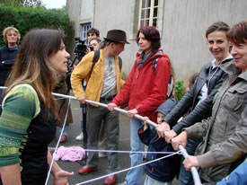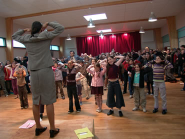 Depuis la veille, ils répètent inlassablement, patiemment, et avec force fous rires les paroles gestuelles qui composent ce langage, et ils s’appliquent sous les recommandations de leur professeur :